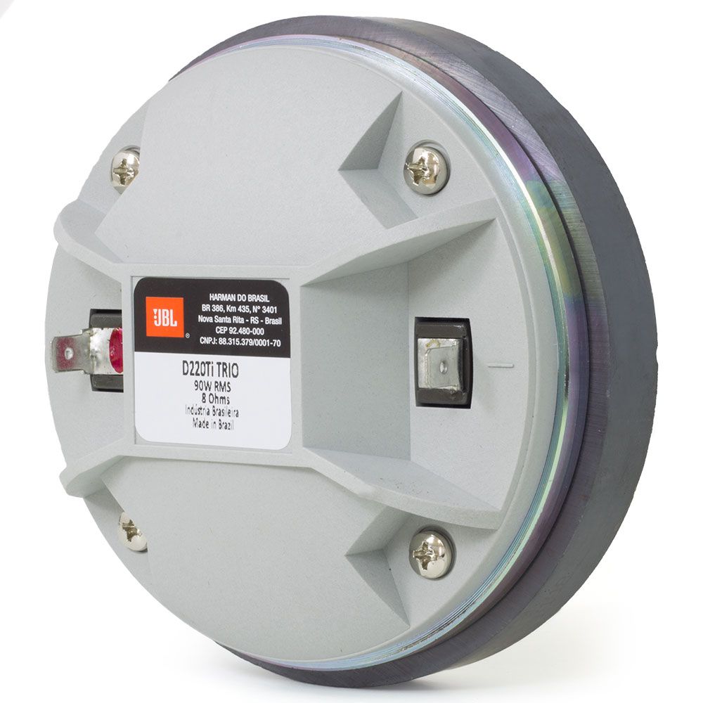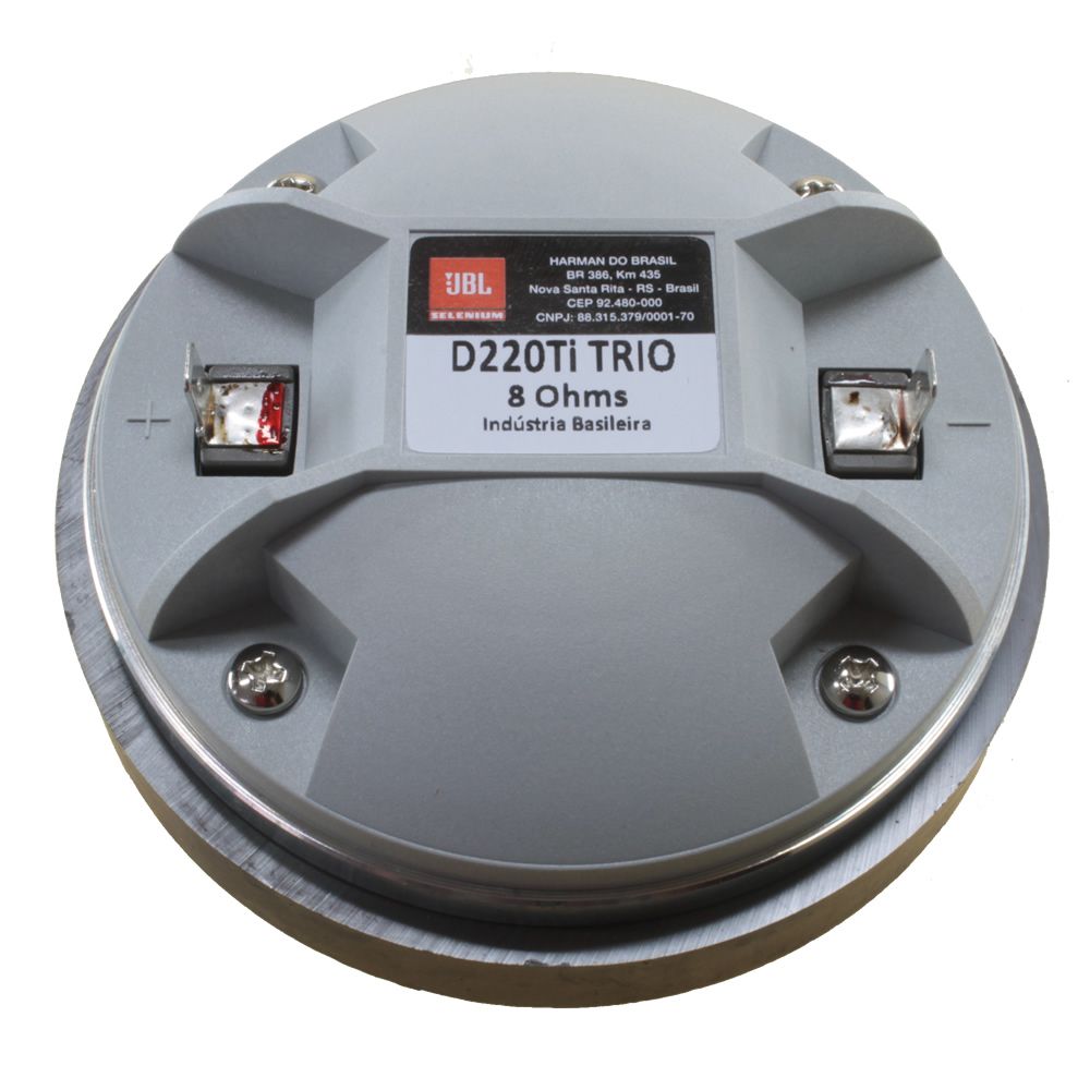 Driver de compression JBL D220Ti Trio à diaphragme titane, impédance 8 Ω, sensibilité élevée (~109 dB), réponse très large (1 kHz-21 kHz) : conçu pour offrir des aigus puissants et précis dans des installations professionnelles ou systèmes haute fidélité.